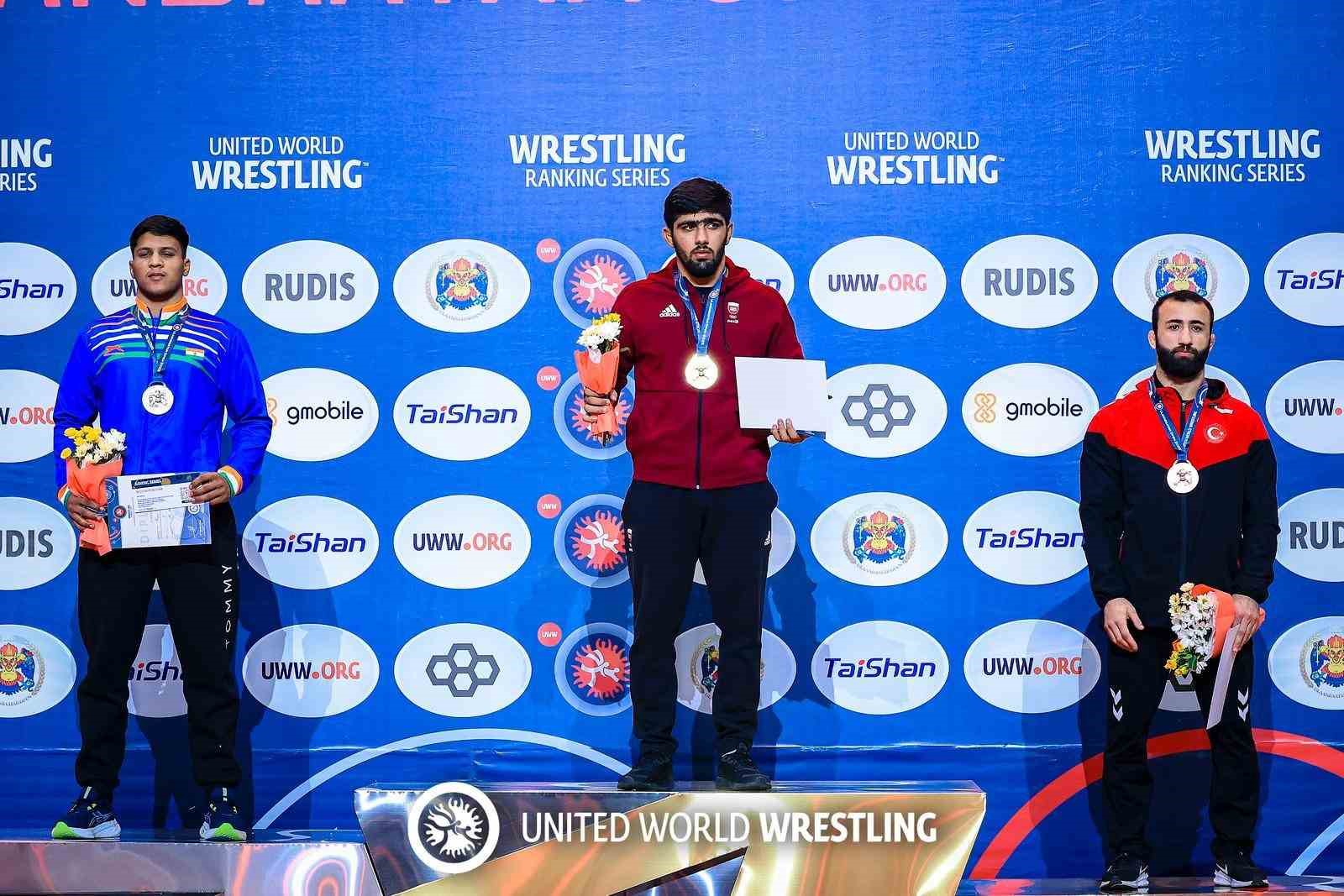 Moğolistan’ın başkenti Ulaanbaatar’da düzenlenen Open Ranking Serisi grekoromen stil müsabakalarında Türk milli güreşçiler, ilk gün 1 altın, 2 gümüş ve 1 bronz madalya kazanarak güçlü bir performans sergiledi. 77 kilo kategorisinde yarışan Ahmet Yılmaz, yarı finalde Moğol rakibi Sumiyabazar Zandanbud’u teknik üstünlükle 11-0 mağlup etti. Finalde Kırgız Maksatbek Uluu ile karşılaşan Yılmaz, 5-1 skoruyla altın […]
